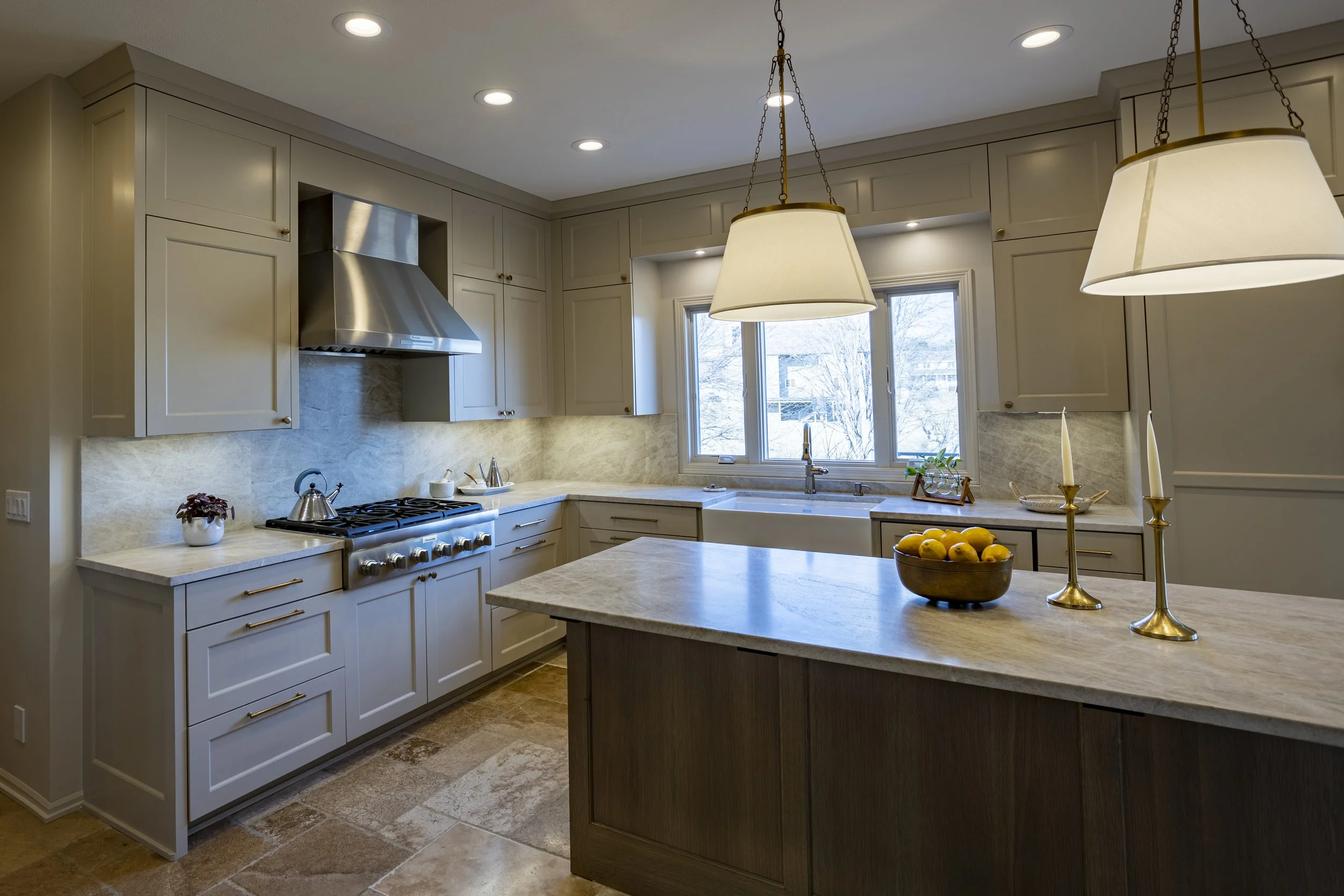 Transitional kitchen remodel featuring elegant finishes and a sophisticated neutral color palette.